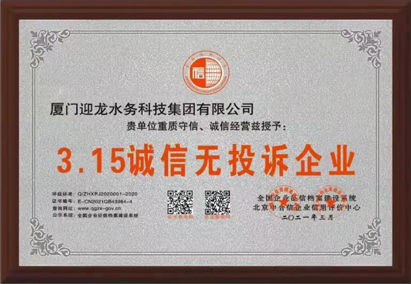 厦门迎龙水务科技集团有限公司是上海迎隆水务工程设备(集团)有限公司全资子公司,注册资金8666万元,是集研发、生产、销售、安装钢塑复合水箱、不锈钢水箱、箱泵一体化、BDF地埋式水箱、变频恒压给水设备于一体的综合性供水公司。公司通过ISO9001:2015标准认证,同时获得福建省卫生厅颁发“卫生许可批件”“福建省疾病预防控中心的检测报告”以及荣获“中国驰名品牌”“中国百强优秀企业”“中国高新技术企业”“全国给排水行业十大著名品牌”“国家权威检测质量合格产品”“质量.服务.诚信AAA企业”"科技型中小企业”等荣誉,并且获得多项行业专利,在国内外有较高的知名度。